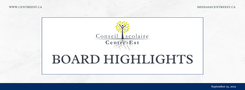 Please see the Board Highlights from the Conseil scolaire Centre-Est Board meeting that was held on September 25, 2025: Board Highlights