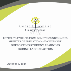 Letter to parents from Demetrios Nicolaides, Minister of Education and Childcare: Supporting Student Learning During Labour Action